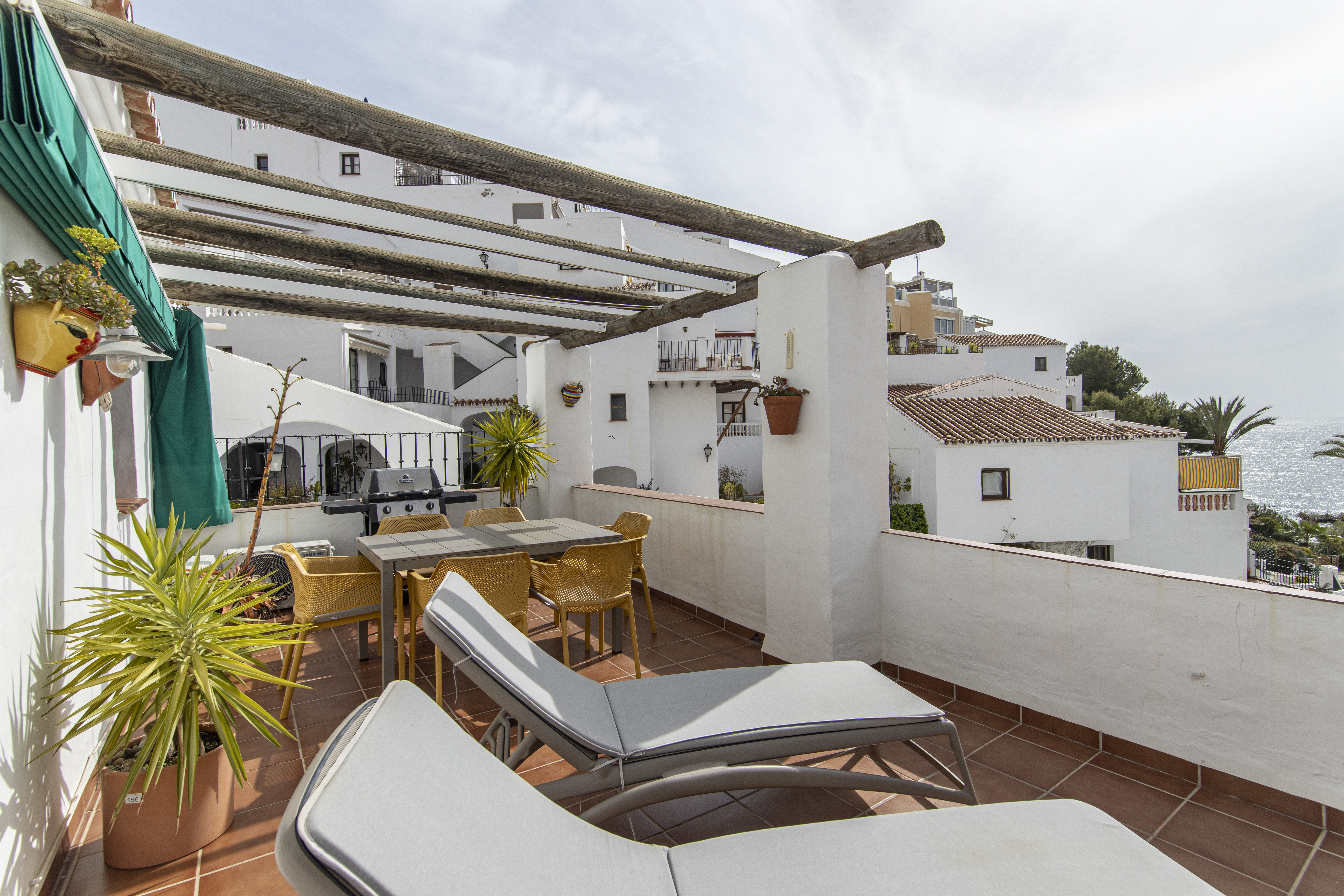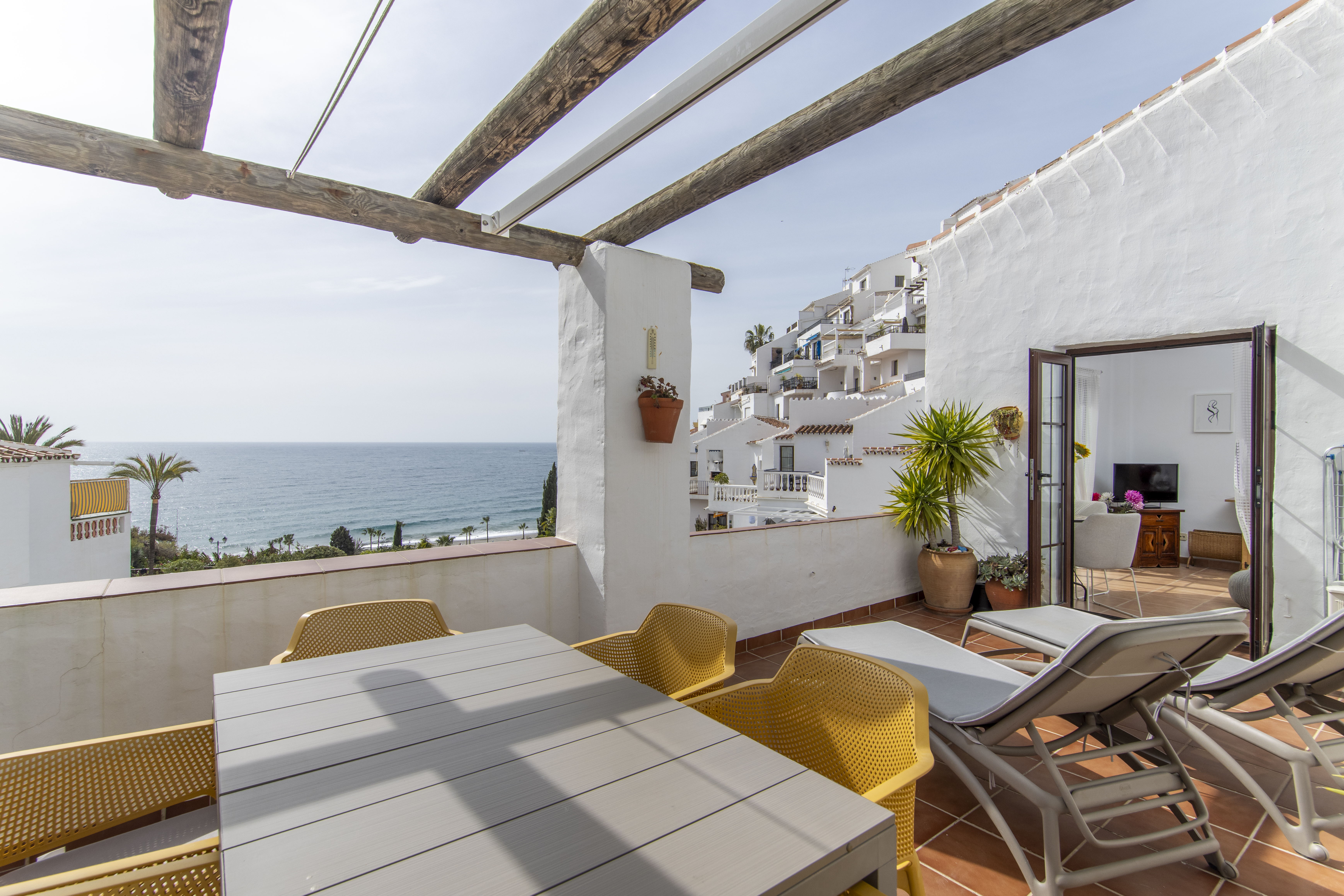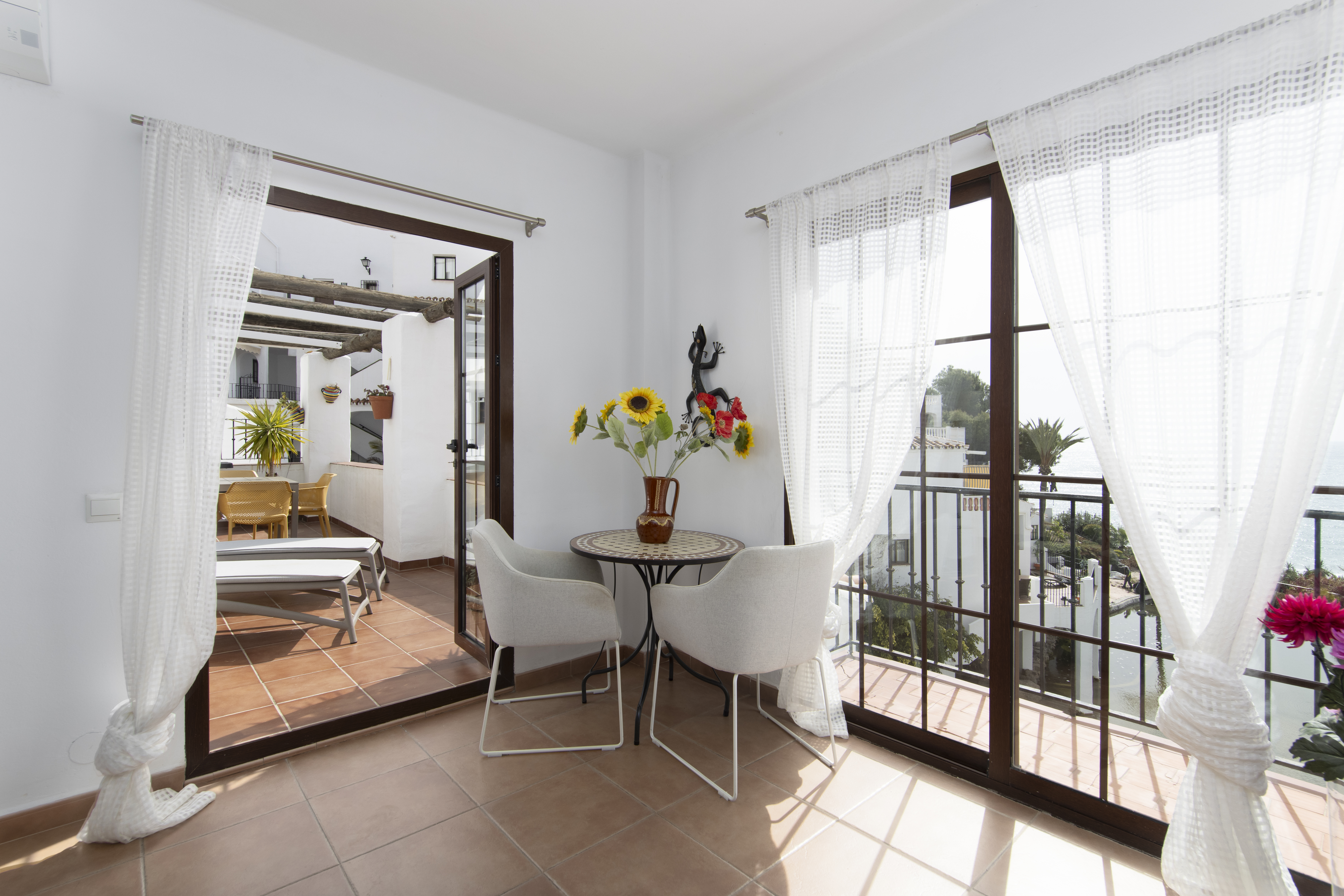 Set within one of Nerja’s most iconic beachfront communities, this charming apartment enjoys open Mediterranean views and direct access to the beautiful lagoon gardens of Capistrano Playa. Peaceful yet well connected, it is an ideal choice for guests looking for scenery, beach access, and an easy walk into town.