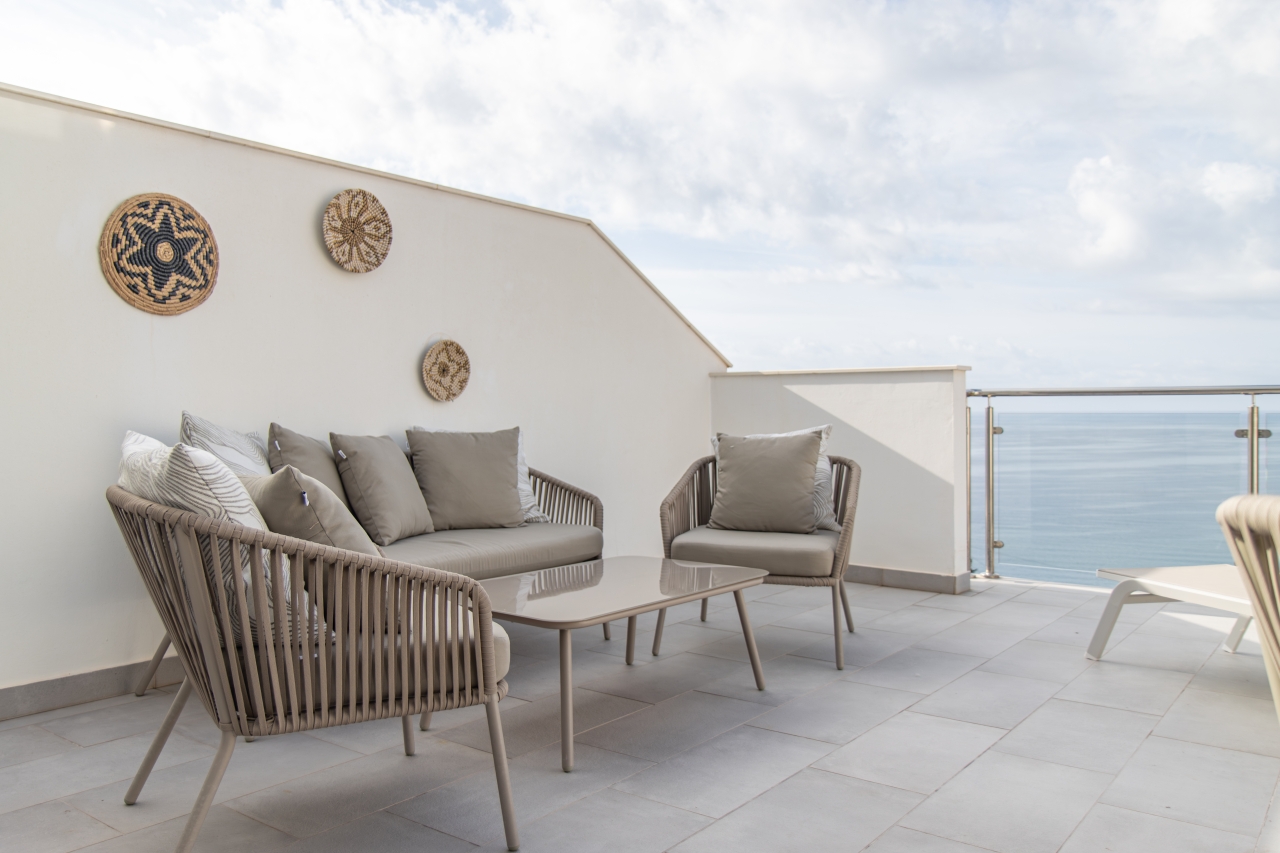 - Private terrace, perfect for enjoying morning coffee or sunset drinks while admiring the Mediterranean.