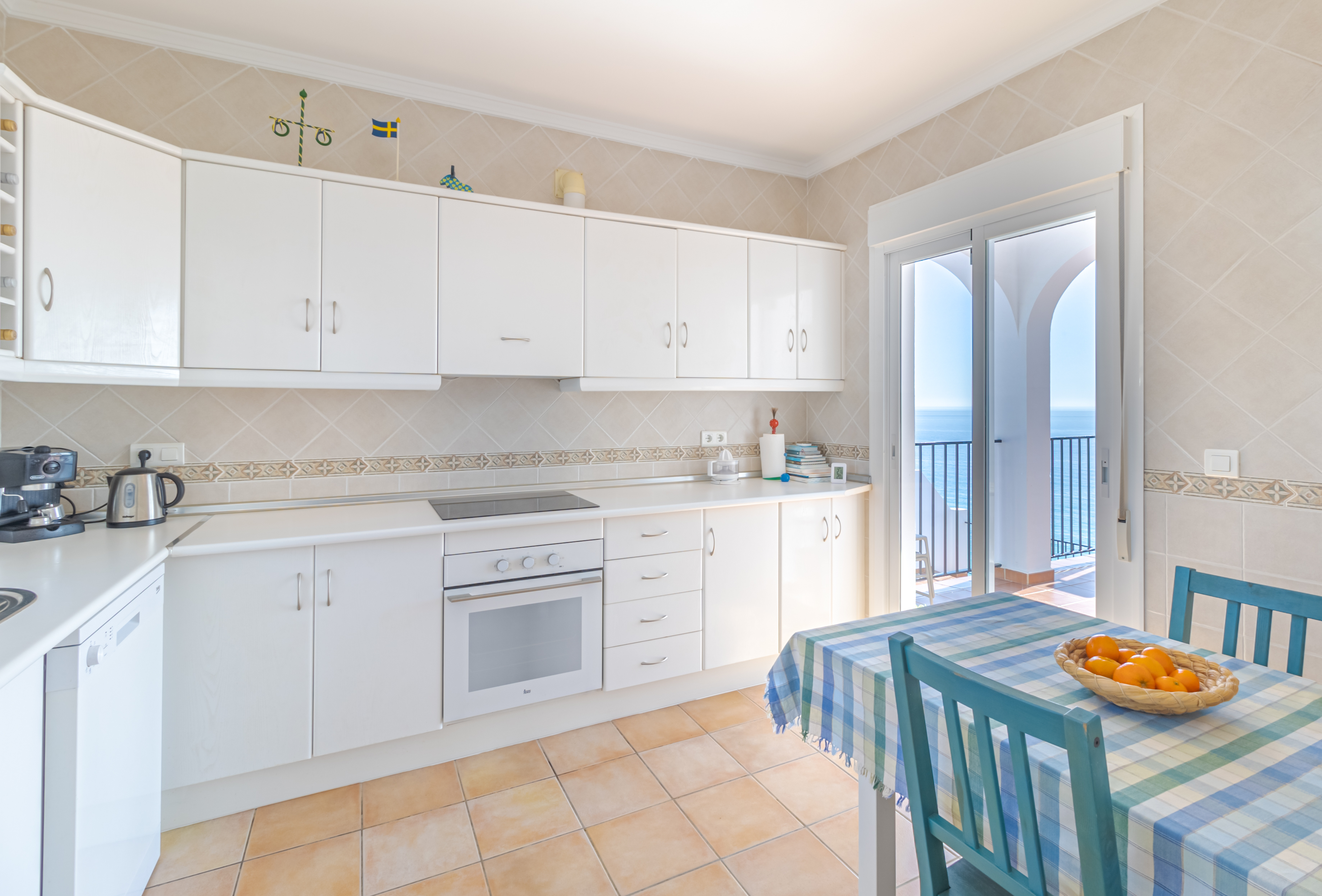 Bright Living & Kitchen Area The main floor includes a well-equipped kitchen and an open-plan lounge and dining area that opens onto a main terrace with stunning sea views, perfect for relaxing or entertaining and enjoying the gas bbq
