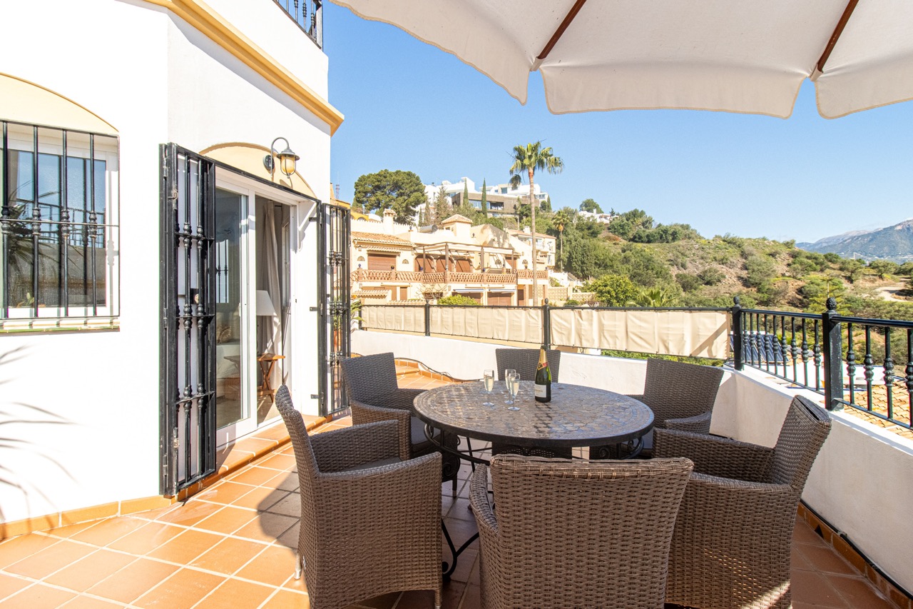 Charming Property in Punta Lara with Private swimming pool and Stunning Views Nestled at the top of Punta Lara, this lovely home offers beautiful views of the mountains, the sea, and the town of Nerja—perfect for a relaxing getaway. As you enter, you're greeted by a welcoming terrace with a seating area, where you can enjoy the sunshine or have a casual meal while taking in the scenery. Down on the lower terrace, you'll find a gas BBQ, perfect for outdoor cooking, along with plenty of space to relax. Following the terrace around, you’ll discover a private pool area with seating and loungers—a great spot to unwind and cool off. Inside, the open-plan layout includes a comfortable living space and a fully-equipped kitchen, ideal for making home-cooked meals. On the ground-level floor, there’s a cozy double bedroom with direct access to the pool area, along with a full bathroom. Upstairs, the master bedroom features a private balcony with stunning views and an ensuite bathroom. There's also another double bedroom and a family bathroom, offering everything you need for a comfortable stay. .